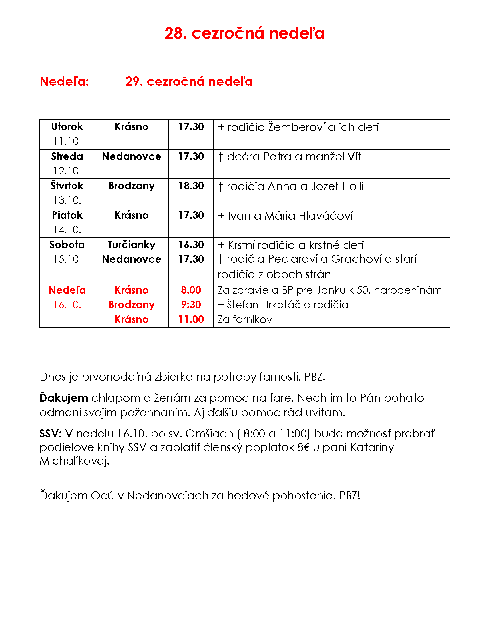 29. nedeľa cez rok